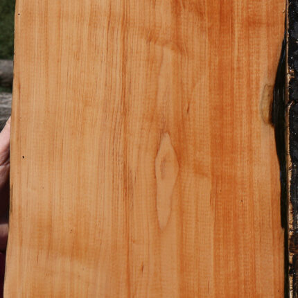 This piece has been kiln dried, surfaced on two sides, and is ready for use. This piece has checks, bug