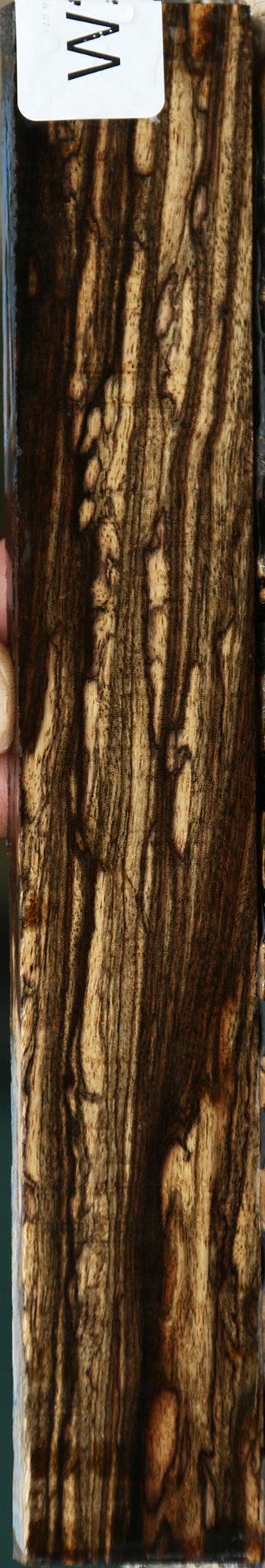 This beautiful Black and White Ebony is kiln dried, wax sealed on the ends, and is ready for use. Some boards may have some internal checks that are not visible from the outside. Uncommonly beautiful, you’ll see the unique patterns and contrast in each individually pictured board! It is natural in this species to have occasional hairline checks along the black stripes. Sandpaper and glue can easily remedy this! Pin holes may be present. We have carefully described the defects; however, hairline checks can be present that are not specifically noted. 1/16″ to 1/8″ bow/twist may be present in boards over 36″ long. This incredible hardwood is unmatched in beauty and delivers a glass-like natural polish. This piece has an edge split. Please see pictures for details.
