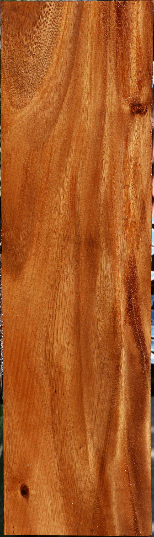 This stunning Monkeypod has incredible color contrast and patterns! This material is kiln dried and surfaced on two sides. Boards over 36″ may have 1/16″ to 1/8″ cup/bow. Monkeypod has incredible color, warmth, and depth. It’s one of our favorites and is ideal for high end woodworking projects like boxes and furniture. This piece has knots. Please see pictures for details.