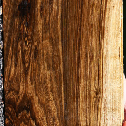 Louro Preto is a dense, durable hardwood prized for its stunning visual contrast and ease of use. Its rich, dark heartwood sharply contrasts with lighter sapwood, creating a dramatic, natural pattern that adds instant character to any project. Subtle ambrosia-like bug holes and colorful streaks further enhance its unique appearance, making each board one of a kind. This kiln dried lumber is surfaced on two sides and works beautifully, gluing easily and taking a smooth, high-quality natural finish. There may be minor surface or end checks and slight bowing (1/16″ to 1/8″) in boards over 36″. Louro Preto is perfect for fine furniture, cabinetry, or standout accent pieces. It delivers both beauty and versatility. This piece has worm holes, pin holes, and sticker stain. Please see pictures for details.