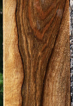 Louro Preto is a dense, durable hardwood prized for its stunning visual contrast and ease of use. Its rich, dark heartwood sharply contrasts with lighter sapwood, creating a dramatic, natural pattern that adds instant character to any project. Subtle ambrosia-like bug holes and colorful streaks further enhance its unique appearance, making each board one of a kind. This kiln dried lumber is surfaced on two sides and works beautifully, gluing easily and taking a smooth, high-quality natural finish. There may be minor surface or end checks and slight bowing (1/16″ to 1/8″) in boards over 36″. Louro Preto is perfect for fine furniture, cabinetry, or standout accent pieces. It delivers both beauty and versatility. This piece has worm holes. Please see pictures for details.