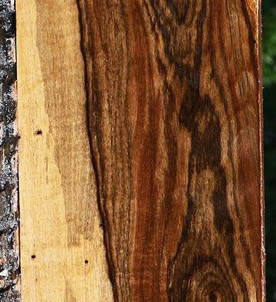 Louro Preto is a dense, durable hardwood prized for its stunning visual contrast and ease of use. Its rich, dark heartwood sharply contrasts with lighter sapwood, creating a dramatic, natural pattern that adds instant character to any project. Subtle ambrosia-like bug holes and colorful streaks further enhance its unique appearance, making each board one of a kind. This kiln dried lumber is surfaced on two sides and works beautifully, gluing easily and taking a smooth, high-quality natural finish. There may be minor surface or end checks and slight bowing (1/16″ to 1/8″) in boards over 36″. Louro Preto is perfect for fine furniture, cabinetry, or standout accent pieces. It delivers both beauty and versatility.