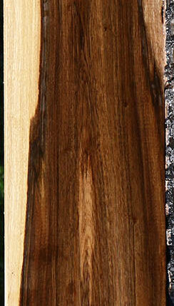 Louro Preto is a dense, durable hardwood prized for its stunning visual contrast and ease of use. Its rich, dark heartwood sharply contrasts with lighter sapwood, creating a dramatic, natural pattern that adds instant character to any project. Subtle ambrosia-like bug holes and colorful streaks further enhance its unique appearance, making each board one of a kind. This kiln dried lumber is surfaced on two sides and works beautifully, gluing easily and taking a smooth, high-quality natural finish. There may be minor surface or end checks and slight bowing (1/16″ to 1/8″) in boards over 36″. Louro Preto is perfect for fine furniture, cabinetry, or standout accent pieces. It delivers both beauty and versatility. This piece has worm holes. Please see pictures for details.