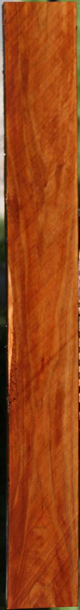 Kiln dried and surfaced on two sides, this high-grade lumber is exceptionally clean. Closely related to Hawaiian Koa, it features a similar iridescent shimmer with rich honey-gold and brown tones. Known for its outstanding tonal qualities, this wood is a must-have—offered at a fraction of Koa’s price. Some boards may contain small pin knots with small voids, which are visible in the photos. Boards longer than 36 inches may have a slight bow or twist ranging from 1/16″ to 1/8″. This piece has a partial rough edge. Please see pictures for details.