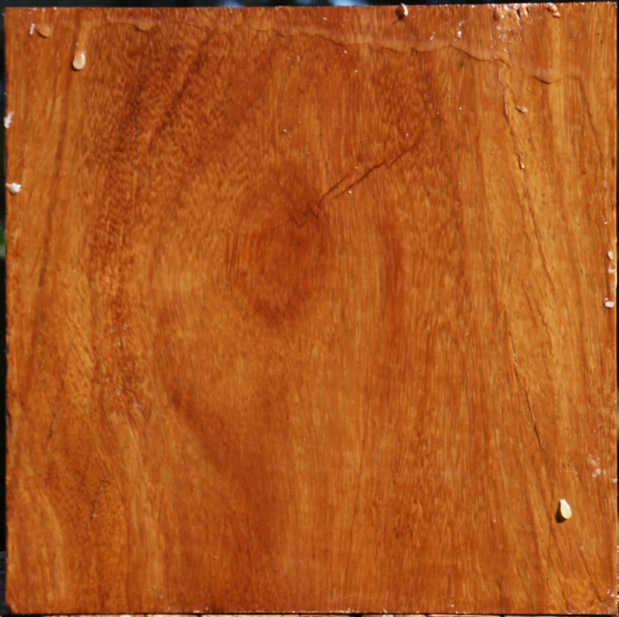 Red Cumaru is an incredibly dense hardwood that turns well with sharp tools and takes a high polish. Since it has a high oil content, it is somewhat difficult to glue, but the oil gives an exceptional natural finish to turned articles. This blank has air dried for 1 year and is completely wax sealed. It contains residual moisture and is ideal for the twice turning method. This wood ships to the USA only.