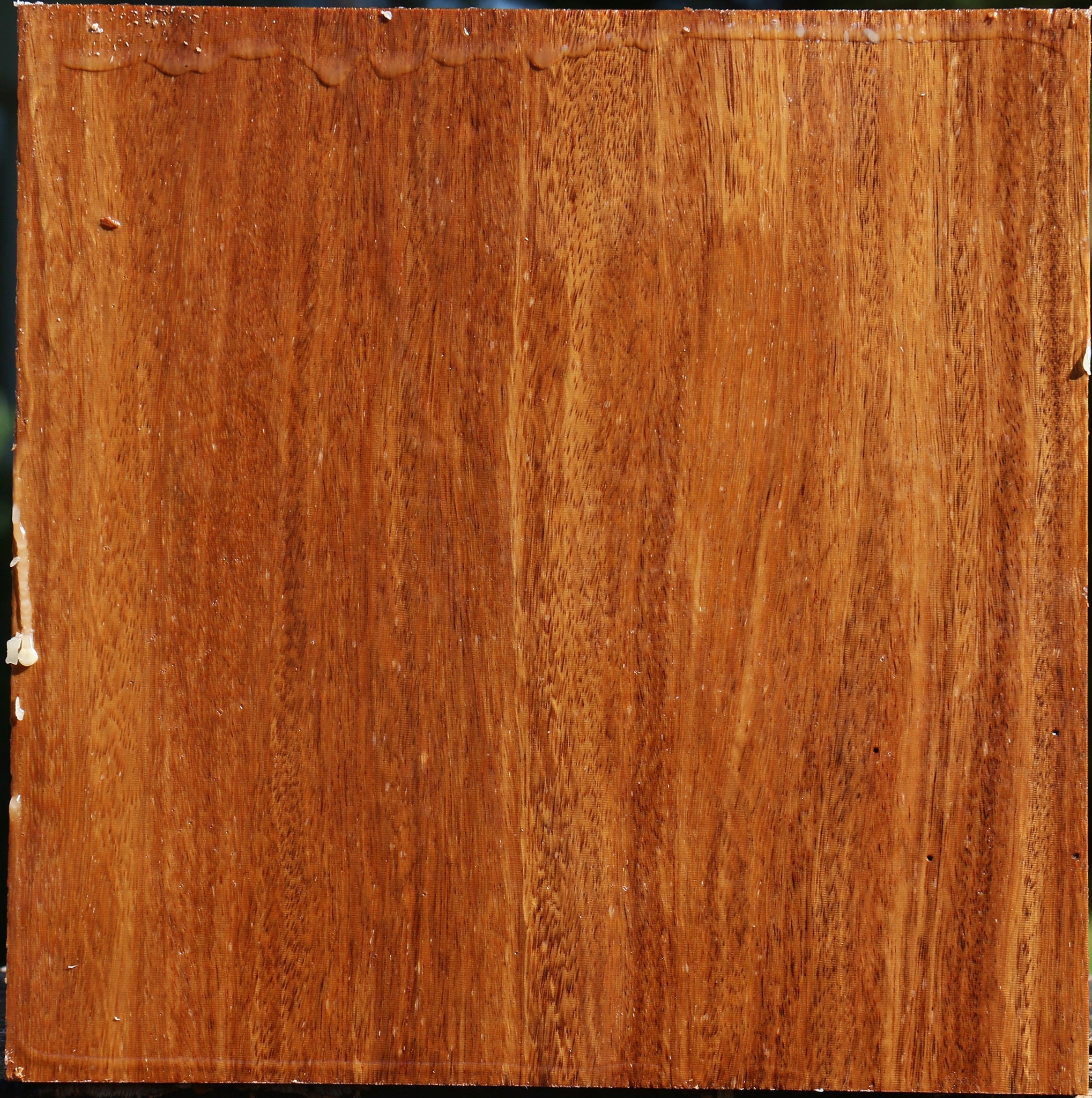 Red Cumaru is an incredibly dense hardwood that turns well with sharp tools and takes a high polish. Since it has a high oil content, it is somewhat difficult to glue, but the oil gives an exceptional natural finish to turned articles. This blank has air dried for 1 year and is completely wax sealed. It contains residual moisture and is ideal for the twice turning method. This wood ships to the USA only. This piece has pin holes. Please see pictures for details.