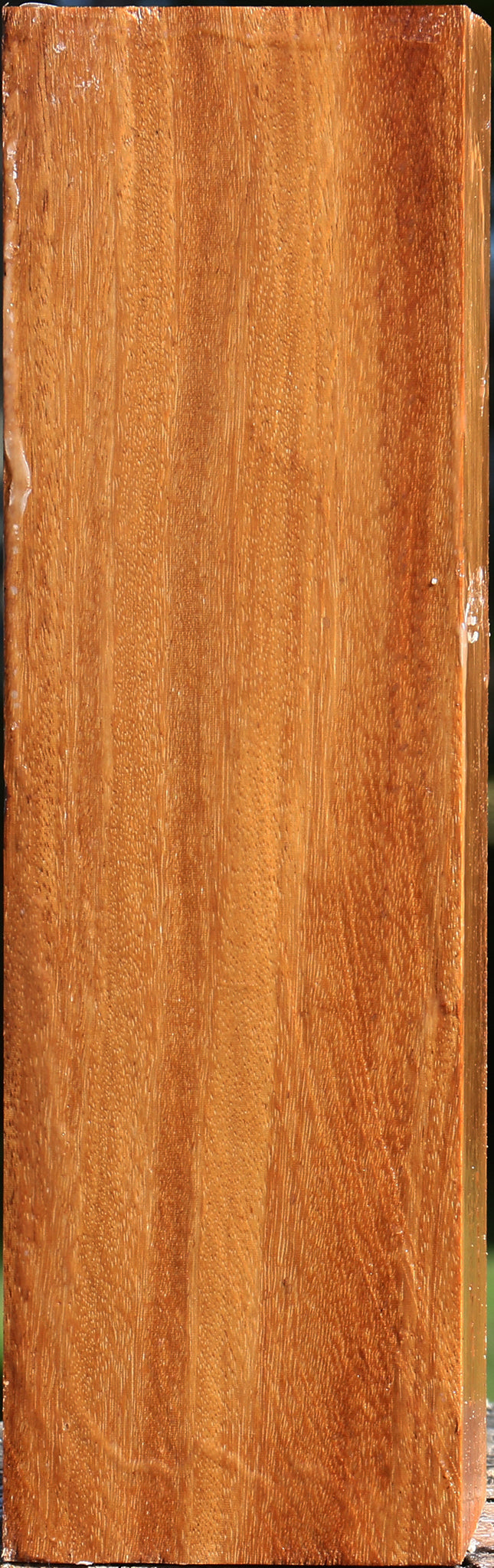 Red Cumaru is an incredibly dense hardwood that turns well with sharp tools and takes a high polish. Since it has a high oil content, it is somewhat difficult to glue, but the oil gives an exceptional natural finish to turned articles. This blank has air dried for 1 year and is completely wax sealed. It contains residual moisture and is ideal for the twice turning method. This wood ships to the USA only.