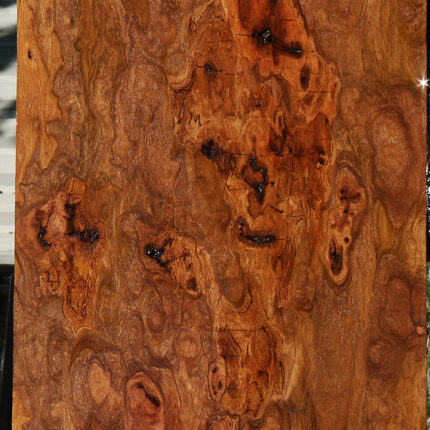 Red Cumaru is an incredibly dense hardwood that turns well with sharp tools and takes a high polish. Since it has a high oil content, it is somewhat difficult to glue, but the oil gives an exceptional natural finish to turned articles. This blank has air dried for 1 year and is completely wax sealed. It contains residual moisture and is ideal for the twice turning method. This wood ships to the USA only. This piece has checks. Please see pictures for details.