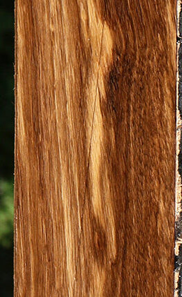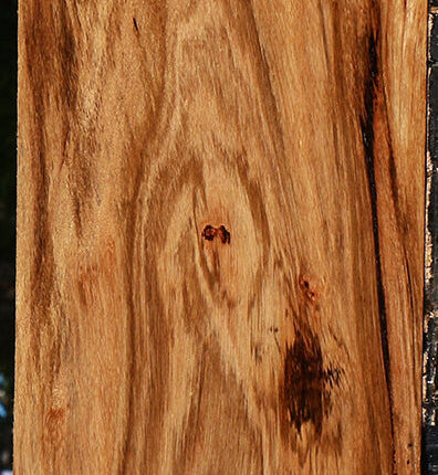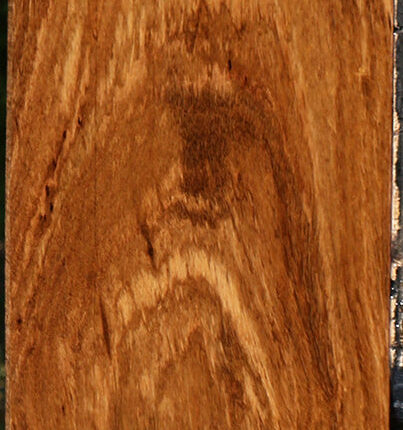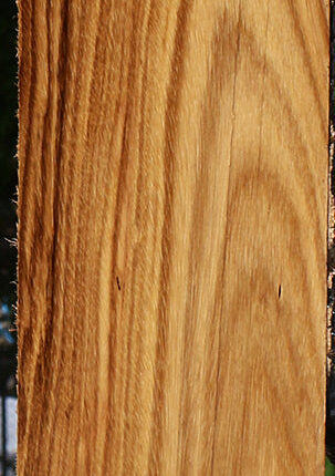 Beli, a unique African hardwood, is also known as Zebreli. It has similarities to African Zebrawood, but is superior in its workability and finishing properties. This hardwood lumber has been kiln dried and surfaced on two sides. There may be an occasional surface or end check. A slight 1/16″ to 1/8″ bow or twist may be present on boards over 36″ long. The wood is open grained and may have gum pockets. It is quite a treat to bring you this wood, as Beli wood is not often available on the US woodworking market! This piece has worm holes. Please see pictures for details.