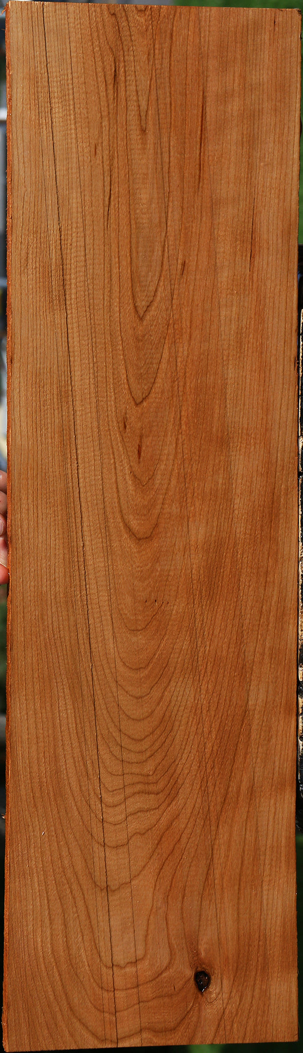 This high quality Cherry lumber has been kiln dried and surfaced on two sides. It is nice clean material, making it ideal for your woodworking projects. Lumber over 3 ft. may have a slight 1/16″ to 1/8″ bow or twist but generally this lumber is flat. There may be gum pockets (small black spots in the grain), a minor check, minor planer skip, or an occasional bug hole present on some pieces. Select this wood for outstanding workability and beauty. This piece has knots and pin knots. Please see pictures for details.