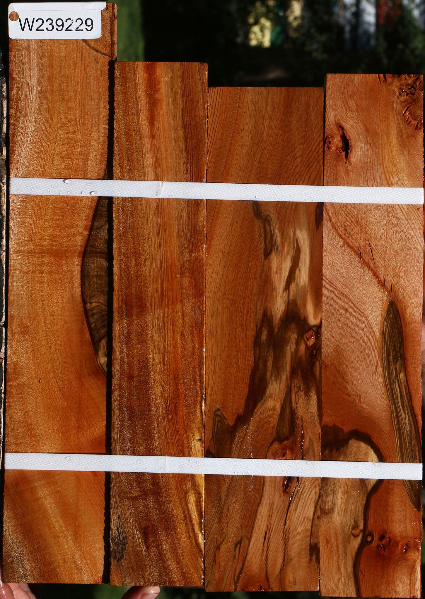 This Brazilian Pepperwood lumber has a range of colors and beautiful patterns that are truly unique. Natural edges are present on some boards and will add a distinctive touch to your woodworking projects. Bark inclusions and minor checks may be present. Boards with the title “rustic” contain many checks and are perfect for epoxy projects. Boards over 36″ may have a slight bow or twist up to 1/8″. This wood has been vacuum kiln dried and surfaced on two sides. Enjoy working this rare, fine grained exotic hardwood! This is a 4-piece set. The measurements above are for the shipping size. Please note the individual measurements. Piece 1 measures 16-7/16″ x 2-15/16″ x 11/16″. Piece 2 measures 14-13/16″ x 2-5/8″ x 7/8″. Piece 3 measures 14-5/16″ x 3-1/4″ x 3/4″. Piece 4 measures 14-13/16″ x 2-3/4″ x 3/4″. Piece 1 has inclusions. Piece 2 has planer skip and worm holes. Piece 3 has splits and knots. Piece 4 has planer skip. Please see pictures for details.