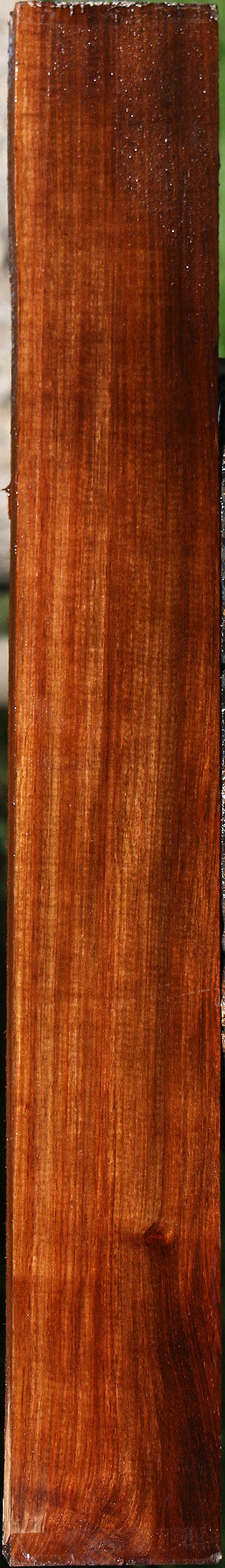 This colorful Muninga lumber is kiln dried and has been surfaced on two sides. It is generally free from defects, but may have an occasional end or surface check. Boards over 36″ may have a slight bow or twist up to 1/8″. Some boards have figure. This wood is ideal for just about any woodworking project. It is easy to work, durable, has great stability in service, and polishes well, not to mention the spicy and pleasing fragrance when it is cut. This piece has knots and inclusions. Please see pictures for details.