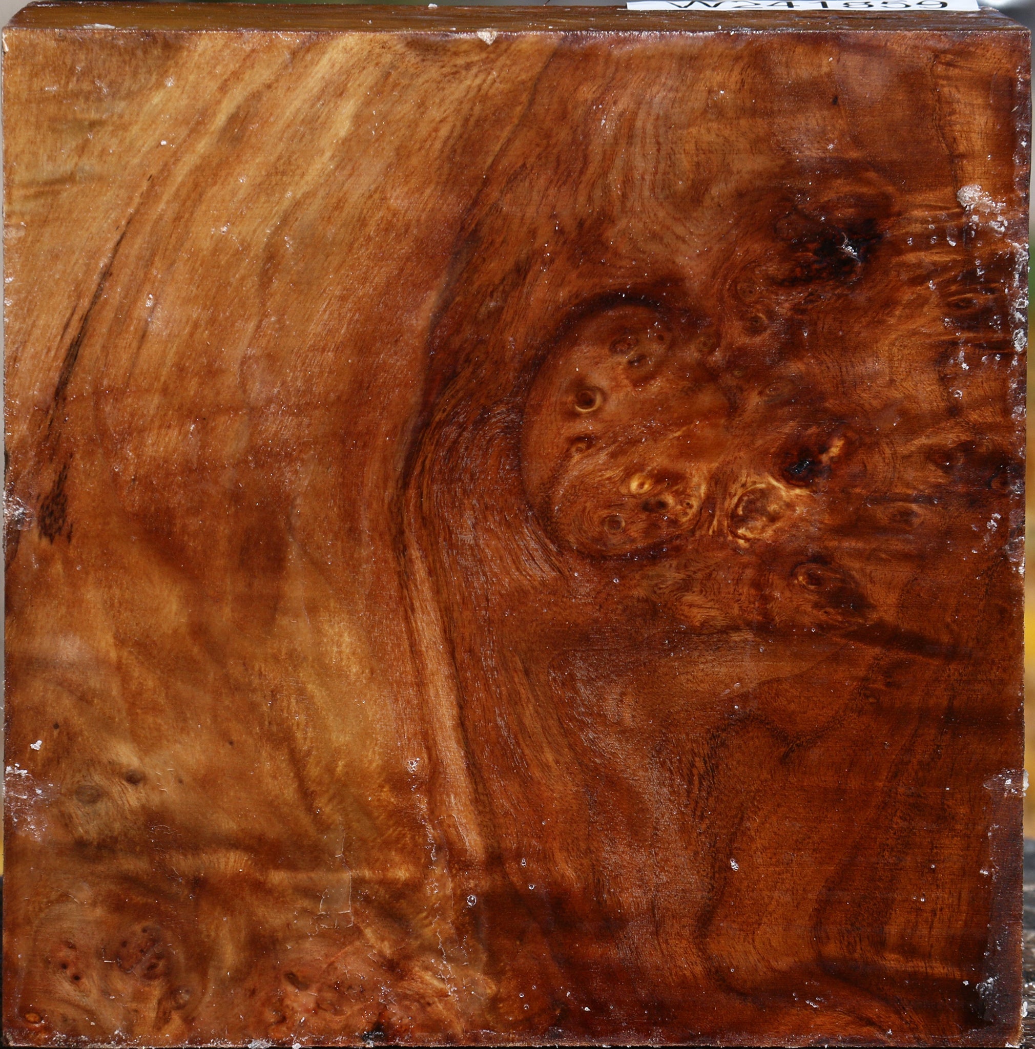 This blank was freshly cut in October of 2025 from partially dried cluster burl logs and contains residual moisture. It has been wax sealed and is intended for twice turning of bowls. Some blanks will have an occasional check, live edge, or void in the burl eyes. Woodturners will love how this turns easily and finishes well. The unique color and burl in this species are lovely for woodturning projects! This piece has inclusions and a rough corner. Please see pictures for details.