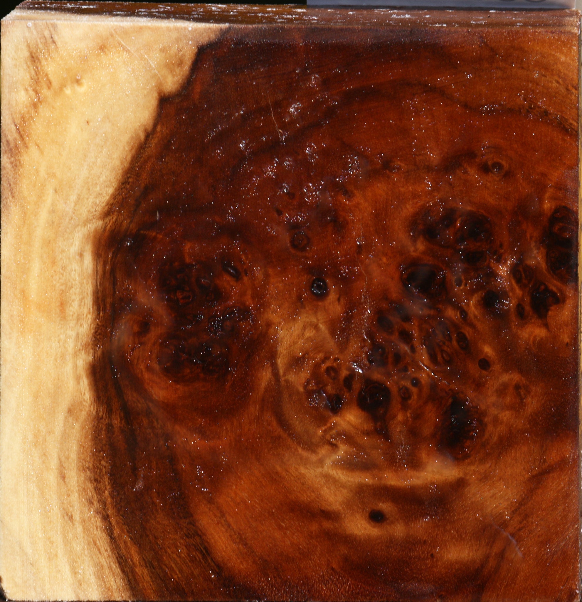 This blank was freshly cut in October of 2025 from partially dried cluster burl logs and contains residual moisture. It has been wax sealed and is intended for twice turning of bowls. Some blanks will have an occasional check, live edge, or void in the burl eyes. Woodturners will love how this turns easily and finishes well. The unique color and burl in this species are lovely for woodturning projects! This piece has inclusions. Please see pictures for details.
