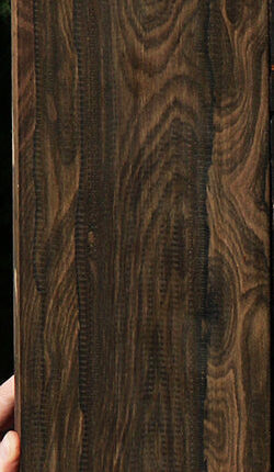 This rare and beautiful true Rosewood from Madagascar (Dalbergia baronii) is ideal for acoustic instruments and high end woodworking. It is old stock that was imported in 1994. It is equilibrium dried and ready to use for your woodworking projects. It has been planed on two sides. An occasional surface, end, or edge check may be present. A 1/16″ to 1/8″ bow may be present. As with all Rosewoods, this lumber has exceptional workability! This wood can only ship to the USA. This piece has a partial rough edge. Please see pictures for details.