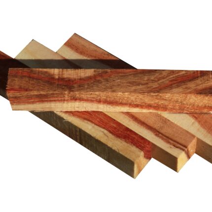 The measurements above are for the shipping size. Each individual blank measures 5″ x 3/4″ x 3/4″ (several blanks are shown to indicate the range of color/grain to expect). This is a colorful batch of Carob, replete with all of the easy woodworking characteristics you love when turning including a high, smooth polish, easy workability, and easy sanding. It is air dried and ready to use. An minor check or rough corner edge may be present. Size may vary +/- 1/8″. Skill Level: Beginner.