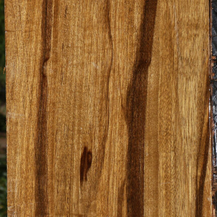 This South American hardwood is extremely rare on the international market. It is heavy, dense, and ideal for your specialty woodworking projects. These wide boards are kiln dried and have been surfaced on two sides. Some of the most figured boards are quartersawn; some boards are ideal for electric guitar drop tops. Boards over 36″ long may have a slight 1/16″ to 1/8″ bow/twist. The grain resembles Marblewood to a degree, but has more ideal working properties. Take advantage of this new hardwood before it’s gone! This piece has worm holes, an end split, and planer skip. Please see pictures for details