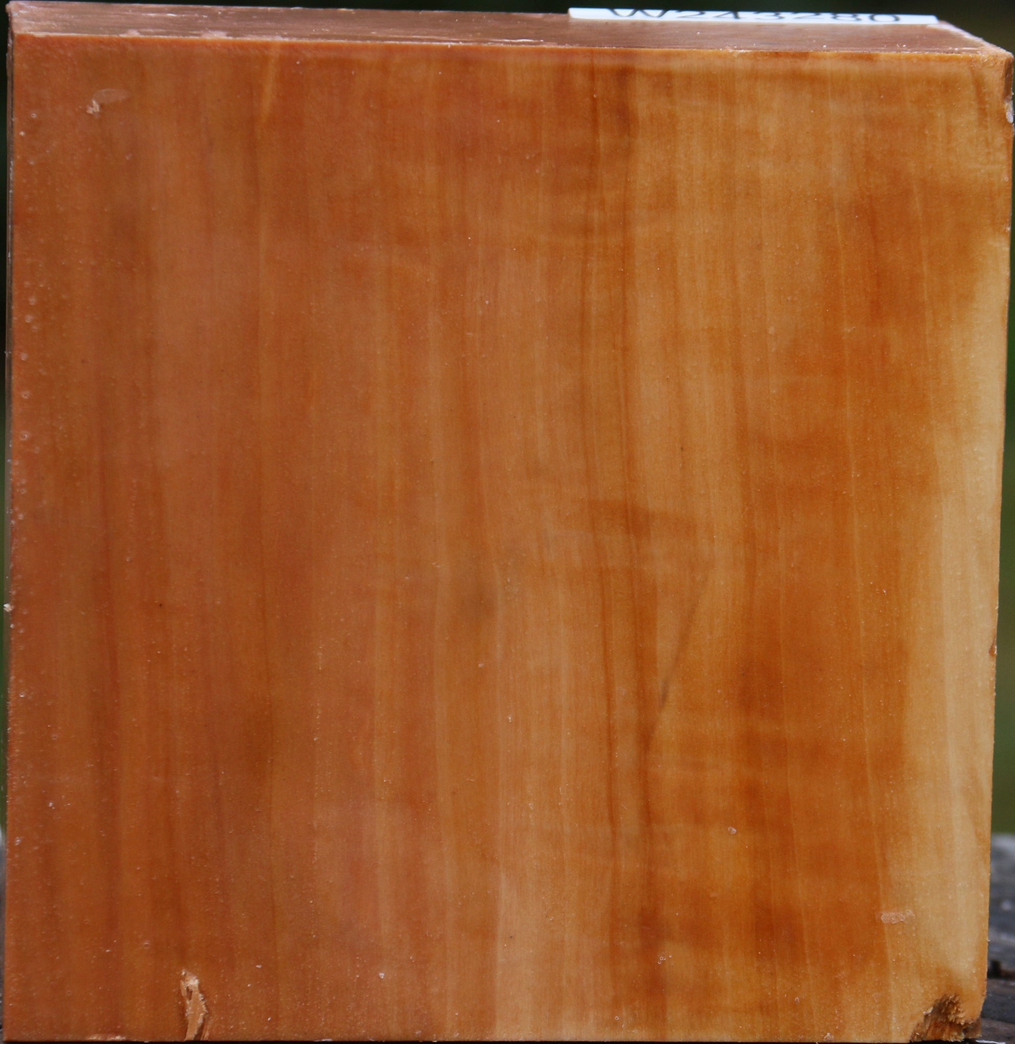 This beautiful Swiss Pear turning wood is premium grade stock that is mostly free of defects. It was freshly cut in November of 2025 and completely wax sealed, making it ideal for twice turned bowls. This fine-grained Swiss hardwood is exceptional to work. It may develop a surface or end check or shrinkage during the drying process. This piece has a rough corner and edge splits. Please see pictures for details.