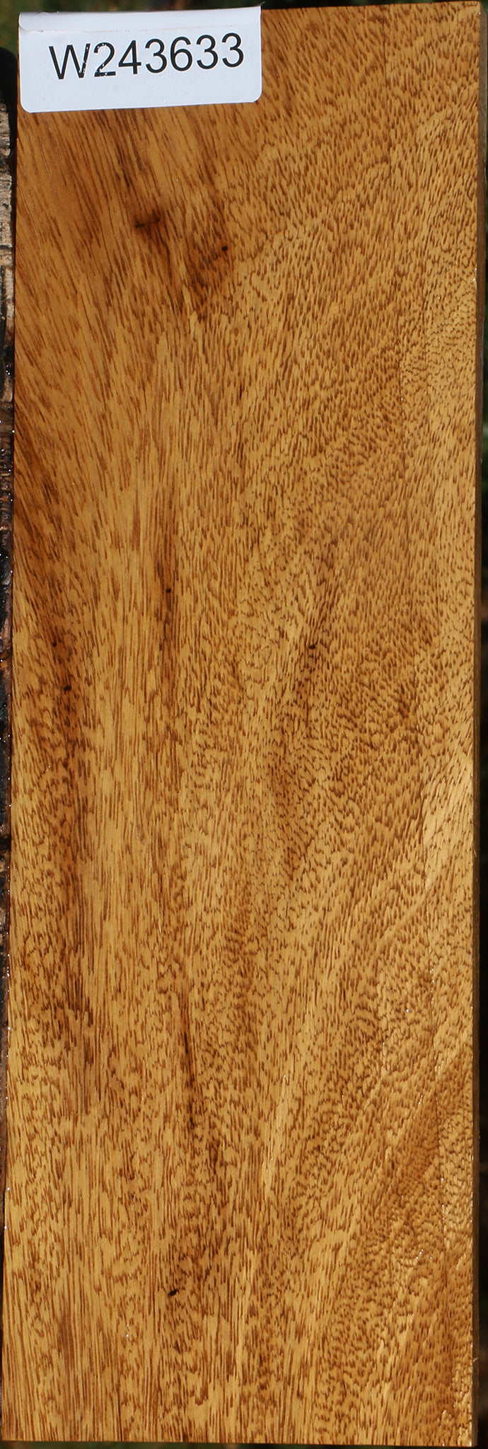 Cerejeira is a beautiful South American hardwood with golden yellow tones and a pleasant aroma. It machines and dries easily, turns well, glues well, and finishes to a nice polish with a lustrous, iridescent shimmer. Crotchwood is present on some boards, which is very rare. Checks and/or cracks may be present in some crotchwood sections. Some edges contain checks and/or cracks. We’ve only had Cerejeira in stock twice in 25 years. Take advantage of this unusual, very exclusive exotic wood offering, and add something unique and new to your next woodworking project! This material is kiln dried and has been surfaced on two sides. This piece has pin holes and worm holes. Please see pictures for details.