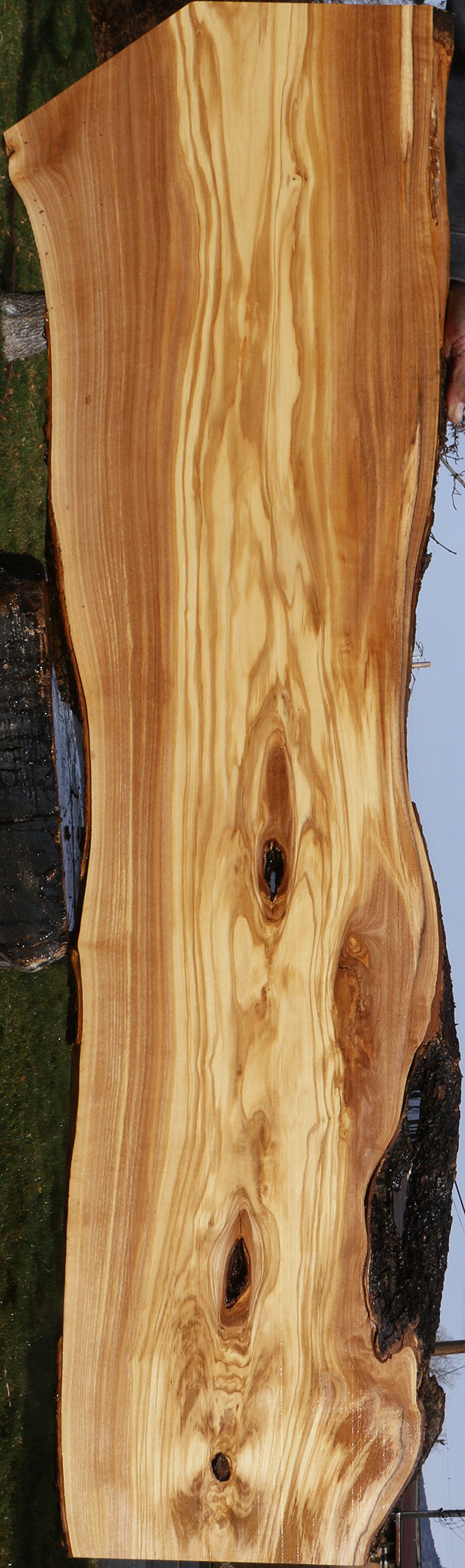 This stunning batch of Italian Olive lumber showcases a rich variety of figure, vibrant color, and elegant grain patterns. Kiln-dried and surfaced on both sides, these boards are ready to use right away. Some pieces may feature natural live edges, small checks, or knots, adding to their unique character. Boards over 36″ may have a slight bow or twist (1/16″ to 1/8″). Italian Olive is an excellent choice for charcuterie boards, cheese trays, cutting boards, and other handcrafted projects! This piece has voids, planer skip, checks, and inclusions. Please see pictures for details.