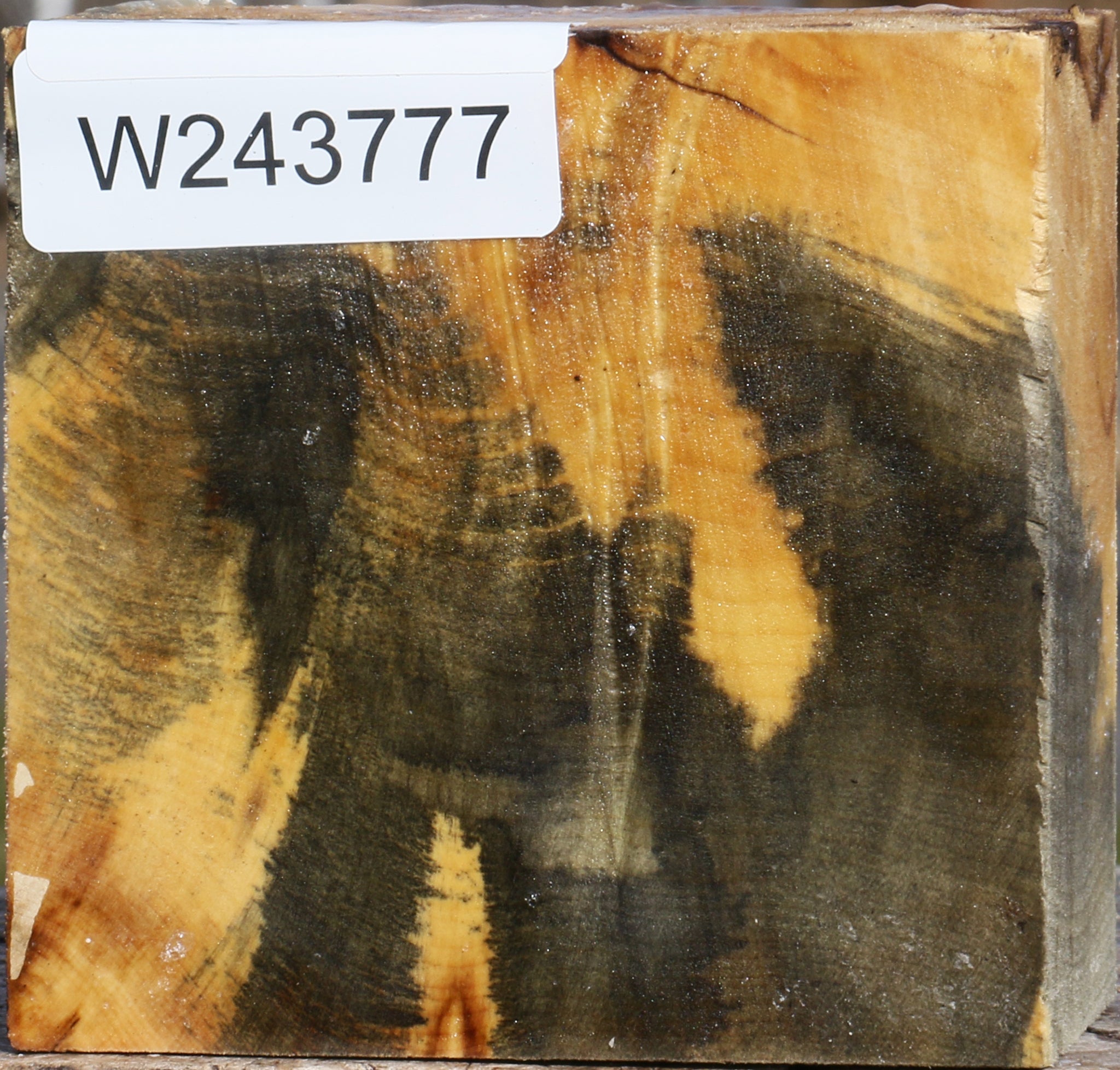 This beautiful Buckeye Burl is a great choice for wood turning! Golden & blue colors blend with burl eyes to yield distinctive woodworking projects. Freshly cut in November of 2025, this wood is completely wax sealed and contains moisture. Buckeye dries very quickly & easily. We recommend twice turning the wood since it contains moisture. Bark inclusions and voids are normal with this species and checks are often present. Buckeye works easily and yields amazingly artistic articles! This piece has checks and a rough corner. Please see pictures for details.