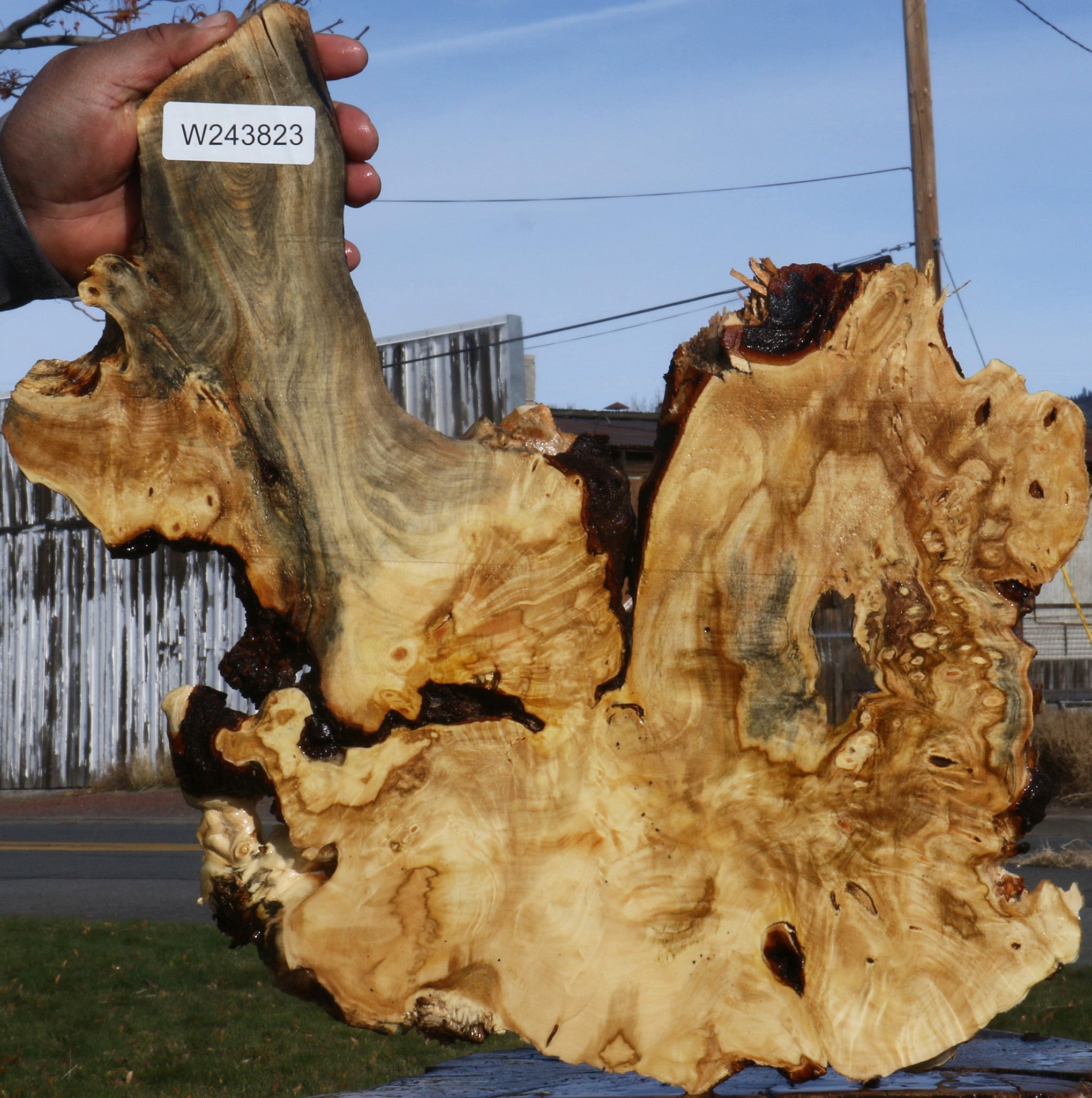 This beautiful Buckeye Burl has wonderful golden & blue colors with a blend of burl eyes that will yield distinctive woodworking projects. This lumber is air dried and ready to use. Bark inclusions, checks, and voids are normal with this species. Buckeye works easily and yields amazingly artistic articles! This piece has a void and splits. Please see pictures for details.