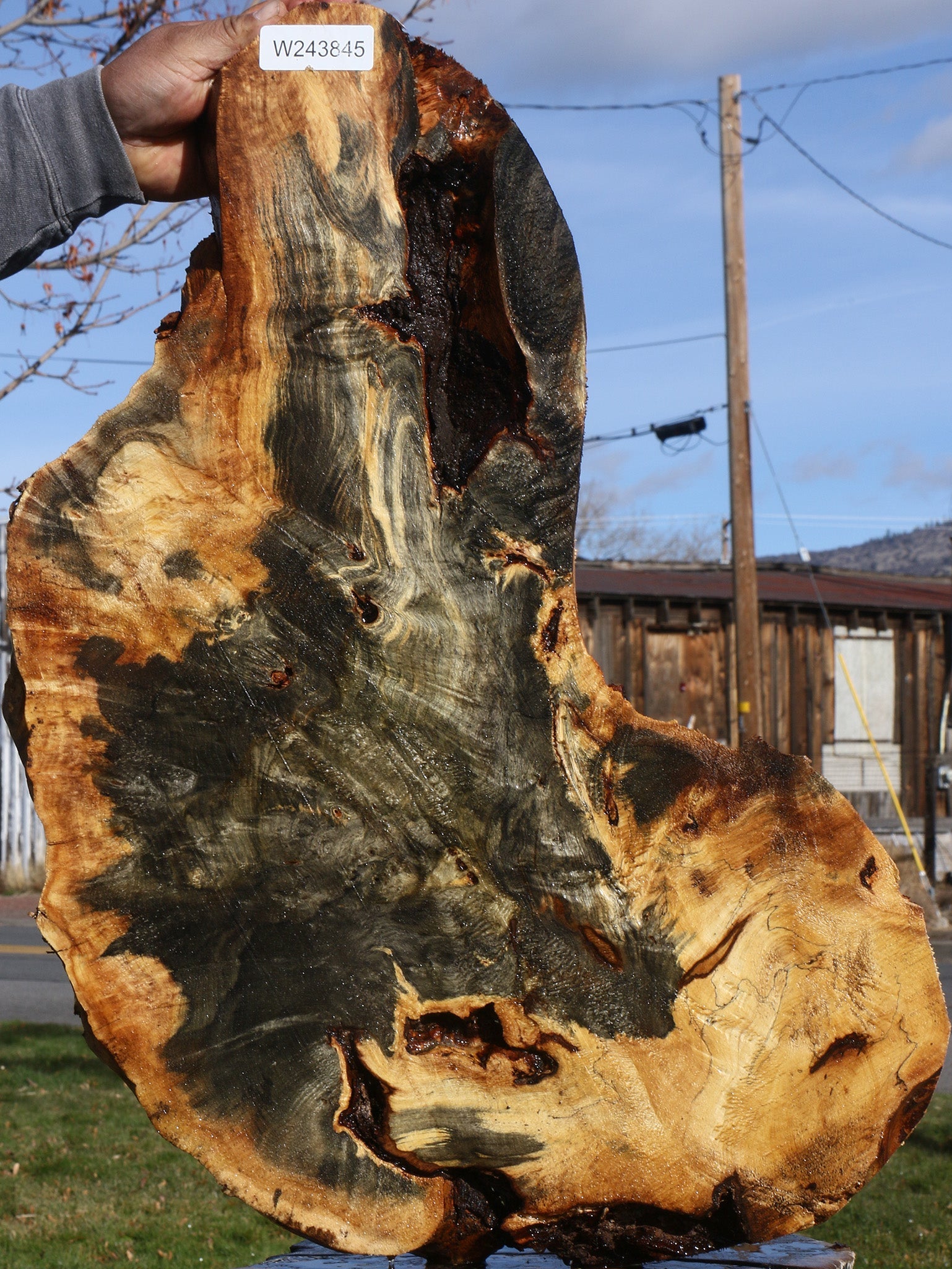 This beautiful Buckeye Burl has wonderful golden & blue colors with a blend of burl eyes that will yield distinctive woodworking projects. This lumber is air dried and ready to use. Bark inclusions, checks, and voids are normal with this species. Buckeye works easily and yields amazingly artistic articles! This piece has a void and splits. Please see pictures for details.