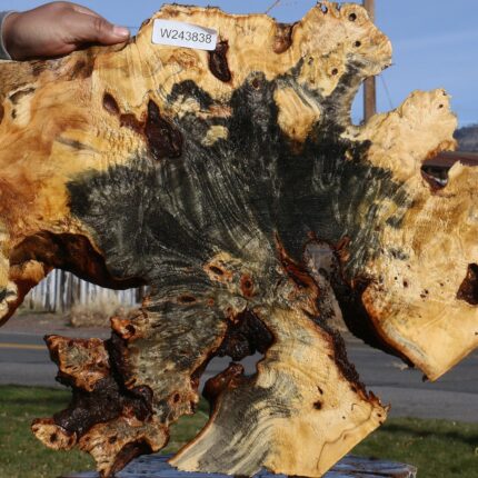 This beautiful Buckeye Burl has wonderful golden & blue colors with a blend of burl eyes that will yield distinctive woodworking projects. This lumber is air dried and ready to use. Bark inclusions, checks, and voids are normal with this species. Buckeye works easily and yields amazingly artistic articles! This piece has splits. Please see pictures for details.