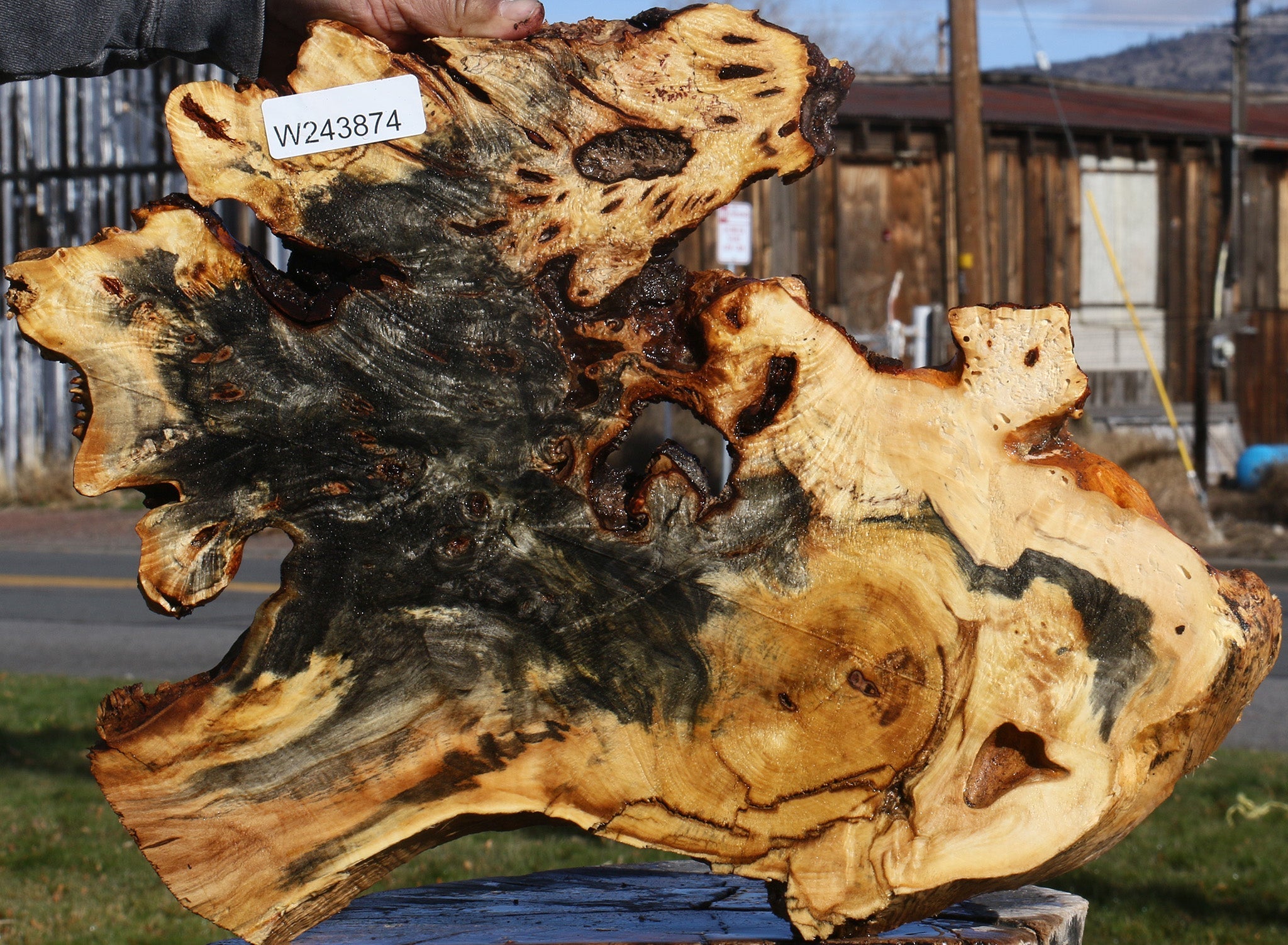 This beautiful Buckeye Burl has wonderful golden & blue colors with a blend of burl eyes that will yield distinctive woodworking projects. This lumber is air dried and ready to use. Bark inclusions, checks, and voids are normal with this species. Buckeye works easily and yields amazingly artistic articles! This piece has a void. Please see pictures for details.