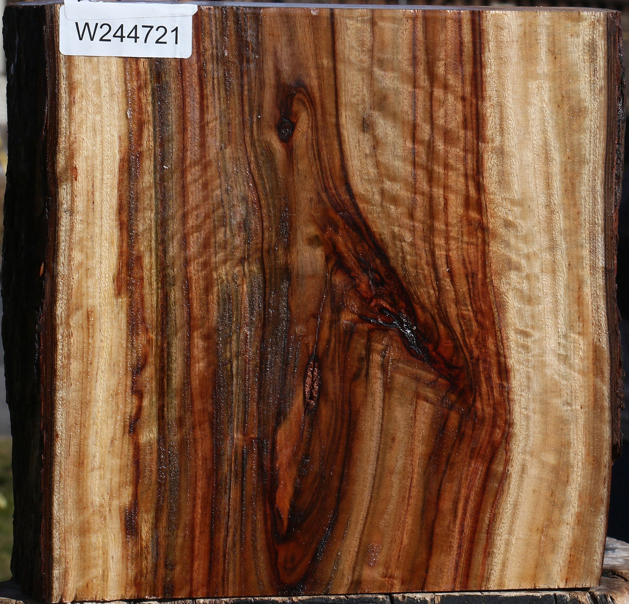This gorgeous Camphor wood was cut from several large, high quality logs. Freshly cut and wax sealed in November of 2025, this species dries with little degrade but should be twice turned for best results. Since the wood is aromatic, your sawdust can be stored in an open box to freshen the air in your shop! Try making a beautiful bowl or turned article with this lovely hardwood. A minor check or natural edge may be present. This piece has inclusions. Please see pictures for details.