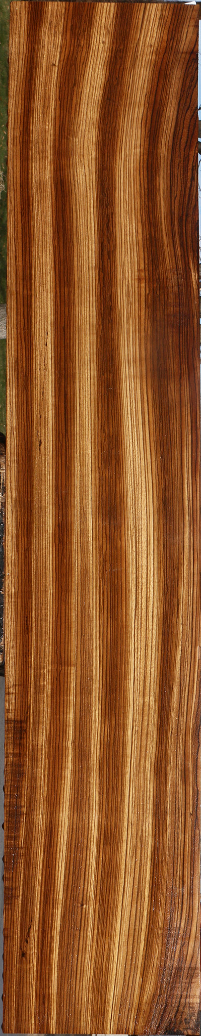 One of the most appealing features of Zebrawood is the exotic appearance of the colorful grain that is definitely present in this Zebra lumber! Black & golden lines make this an excellent choice for many woodworking projects. For ease in finishing, use a sanding sealer to seal the open pores. Most boards are quarter sawn or rift sawn and have variegations! Gum pockets or a minor check are naturally occuring and may be present in some boards. Boards longer than 36″ may have 1/8″ bow or twist but they are generally flat. Zebra is a unique African hardwood that’s great for accents. This lumber is kiln dried and ready to use. This piece has inclusions and planer skip. Please see pictures for details.