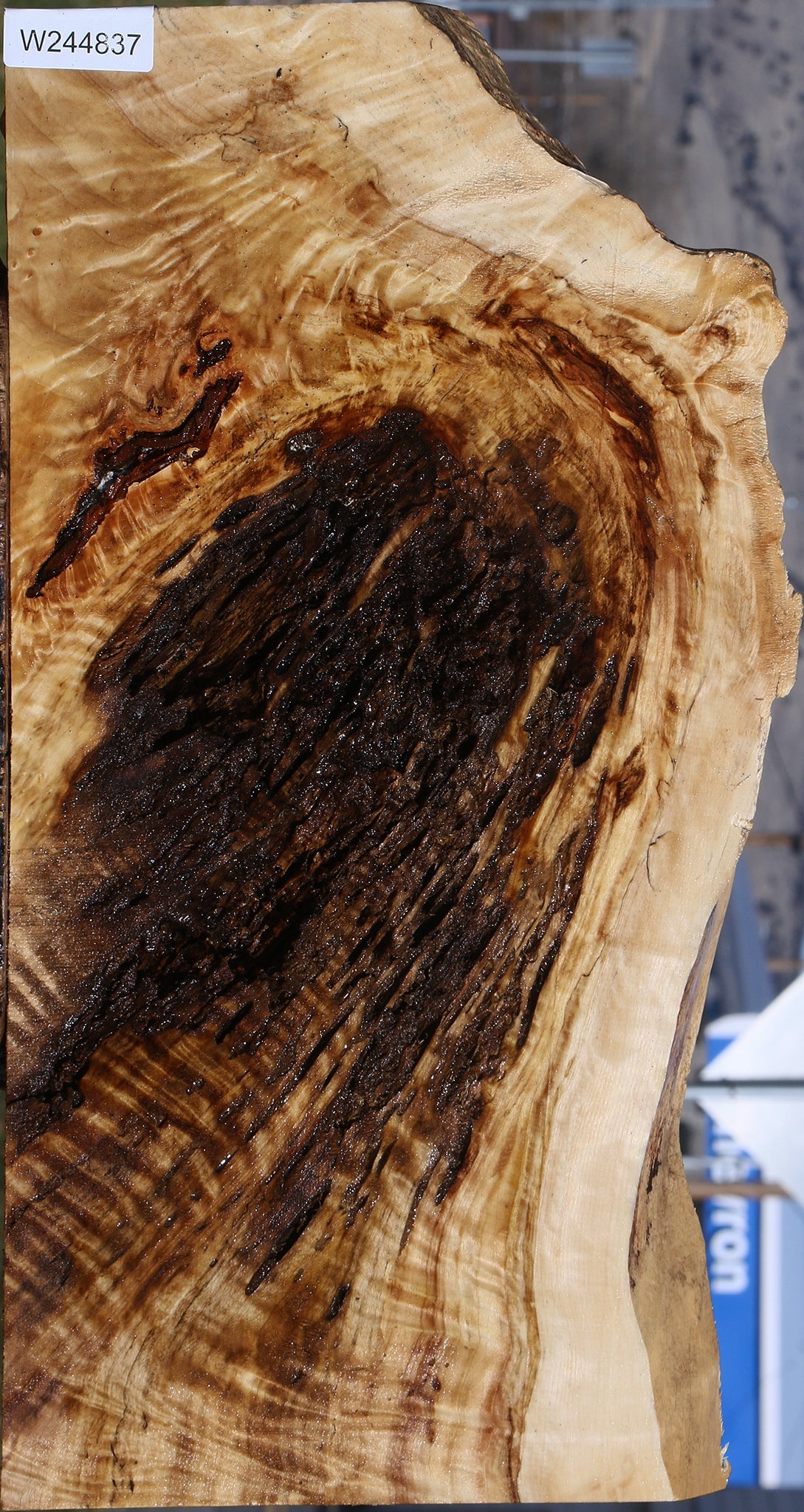This fiddleback Black Cottonwood lumber has nice color, figure, and patterns as it was cut from the figured areas of crotchwood logs. It has been kiln dried and surfaced on two sides. Occasional checks or pin holes may be present. Boards over 36″ may have a 1/16″ to 1/8″ bow or twist. Cottonwood is an easy hardwood to work, glue, and sand, making it an ideal hardwood for your woodworking projects. This piece has inclusions, voids, and worm holes. This piece is sold “as is” due to defects and is ineligible for a refund or return. Please see the pictures and description for details and inquire for more details about the defects.