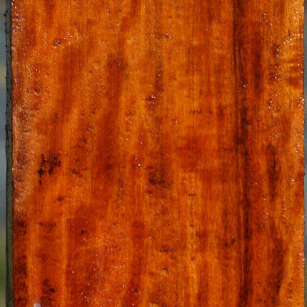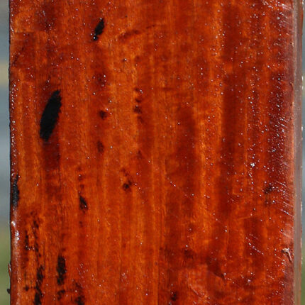 These Pernambuco turning blanks have incredibly vibrant color! Fiddleback may be present in some. Blanks have air dried for 1 year, are completely wax sealed, and contain residual moisture. This piece has checks and knots. Please see pictures for details.
