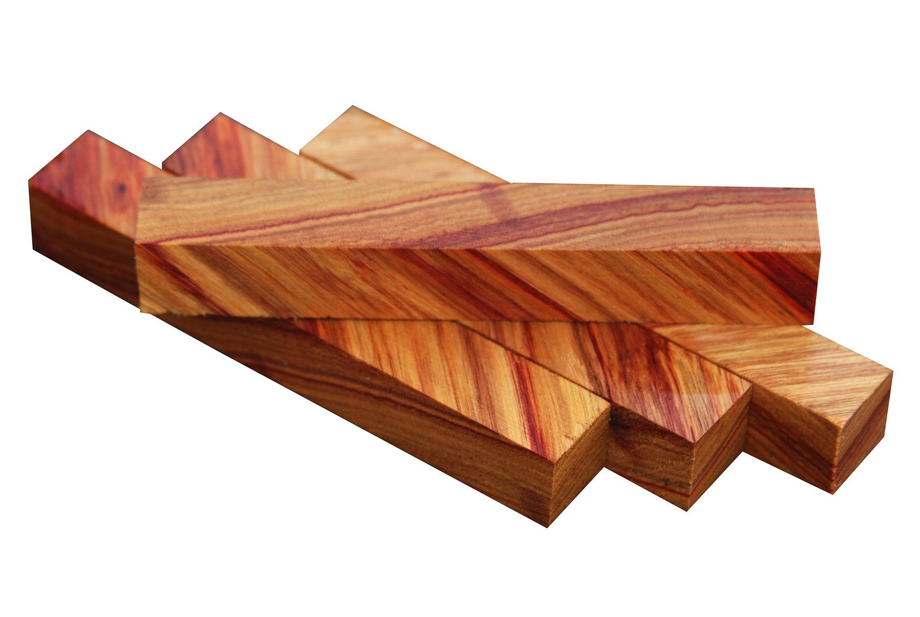 The measurements above are for the shipping size. Each individual blank measures 5″ x 3/4″ x 3/4″ (several blanks are shown to indicate the range of color/grain to expect). Skillfully cut from the highest grade Canary, these angle cut pen blanks beautifully display elliptical stripes and patterns when turned. Yellow, red, orange, green, golden, and brown are common colors. Every blank has unique coloration. No two are alike! This species turns easily and takes a smooth, high natural polish. Skill level: Intermediate.