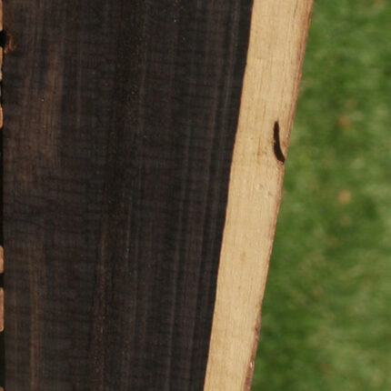 Hidden in a special stash and dried for 15 years, this highly prized African Blackwood is ready for your projects now! This extraordinary, premium grade material is very dark in color and high in quality. Many pieces contain a live edge with checks, as well as surface checks. Please see photos for irregular sizes and voids that may exist in some boards. Some may have a soft area. Lumber is either wax sealed on the ends or completely wax sealed. When first cut, African Blackwood looks grey with color streaks but when finish is applied, it looks black. African Blackwood is the best tone wood in the world. This wood ships to the USA only. This piece has voids, inclusions, and checks. Please see pictures for details.