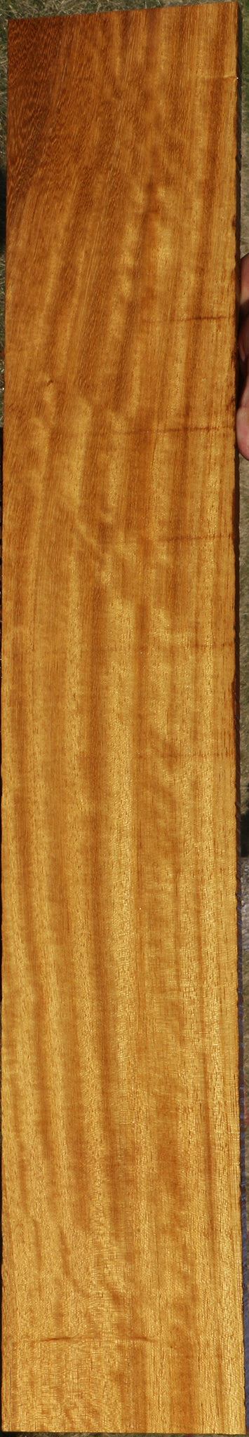 This African Teak lumber is kiln dried and has been surfaced on two sides. The heartwood ranges from yellow to golden with a slight hint of brown. It has a coarse texture with open grain. Quarter or rift sawn boards may show some ribbon or fiddleback figure, as shown in the picture of each item. A minor end or surface check may be present. Boards over 36″ may have a slight 1/16″ to 1/8″ bow/twist. This is an exceptional substitute for genuine Burma Teak at a fraction of the cost!
