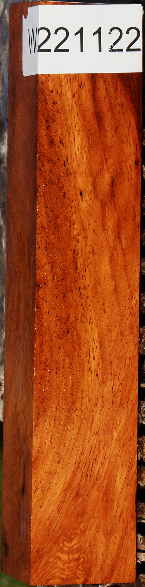 This exceptional stock combines figure and burl with warm Amboyna-like colors! There are inclusions present on all pieces. Some may have rough edges and small voids. Crushed turquoise or other minerals can be used as a stunning inlay contrast in areas that contain inclusions. This stock has been air dried for 7 years and is ready to use. This piece has inclusions and pin holes. Please see pictures for details.