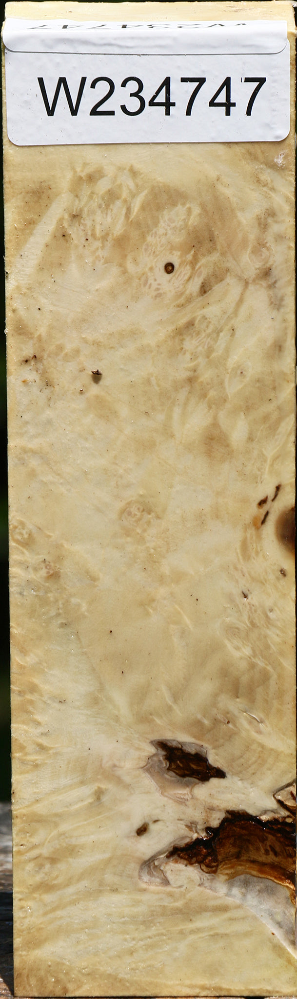 This Box Elder wood has a range of creamy orange and vanilla colors mixed with some pink streaks through creamy yellowish sapwood that truly sets this wood apart. Noted blanks have nice burl eyes. This wood was freshly cut in July 2025 and contains residual moisture. It has been completely wax sealed. Live edge pieces may have a natural edge or rough corners, box heart, void, or end checks. Woodturners will love turning this easy to work wood. This piece has inclusions. Please see pictures for details.