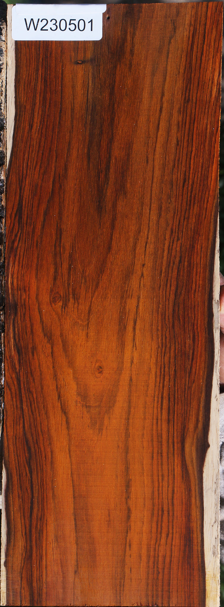 The rich red, orange, and violet tones of this Cocobolo lumber make this a fantastic choice for any woodworking project. This is clean, high quality, kiln dried stock that is ready to use. 1/16″ to 1/8″ bow/twist may be present in boards over 36″ long. A minor check or pin hole may be present. Lighter colors will darken with age. Cocobolo is exceptional for fine woodworking. This piece has bug holes. Please see pictures for details.