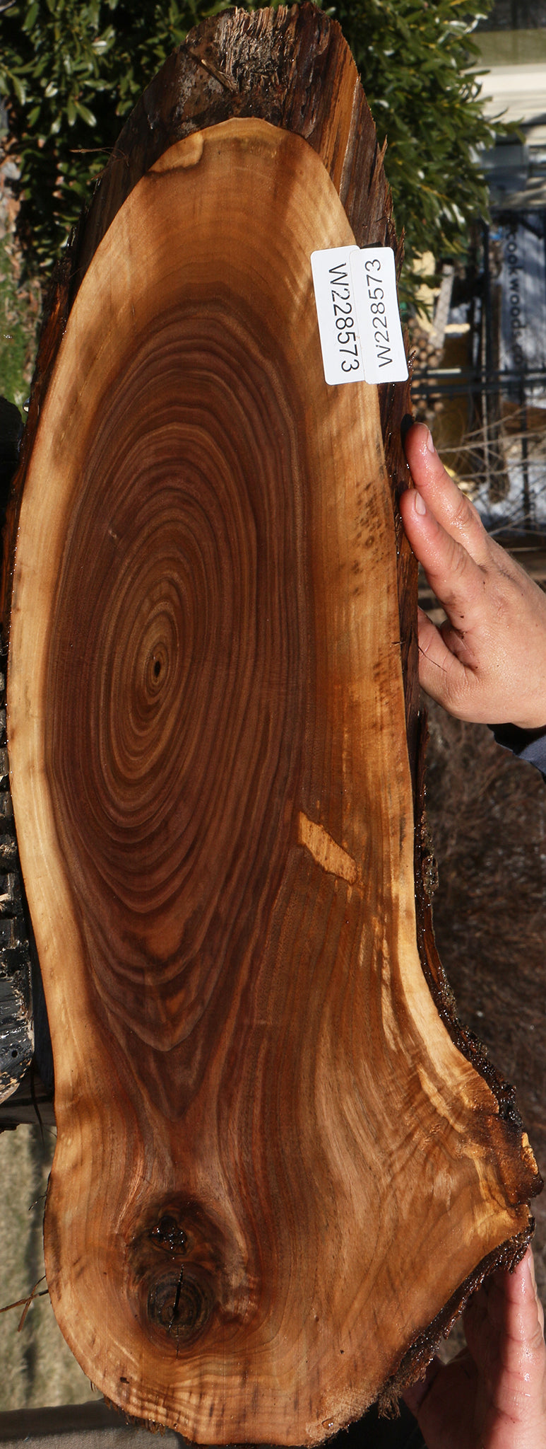 This beautiful American Black Walnut cookie is ideal for making unique woodworking projects like charcuterie boards! Occasional small end or surface checks may be present. It has been kiln dried, surfaced on two sides, and is ready to use. A slight 1/16″ to 1/8″ bow/twist may be found in cookies over 24″ long. This wood is ideal for any special project that you have in mind! All stock is listed and the supply is limited, so shop fast! This piece has inclusions and splits. Please see pictures for details.