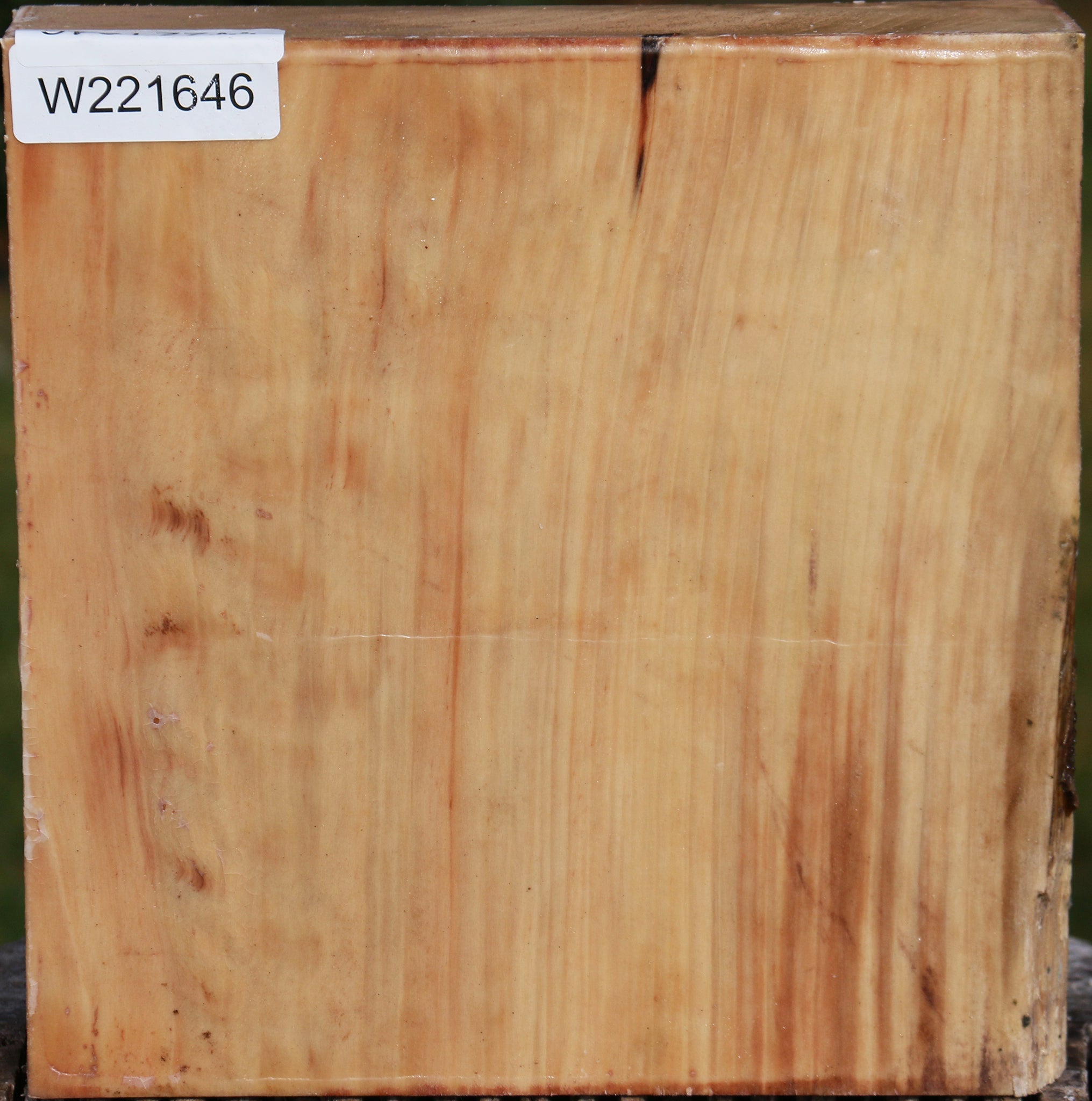 This stock was freshly cut in November of 2024 and is fully wax sealed. It is ideal for woodturning projects as it turns well. We suggest twice turning to avoid shrinkage or checking. A satiny smooth polish is possible in this close-grained hardwood. This piece has a partial rough edge and machine marks. Please see pictures for details.