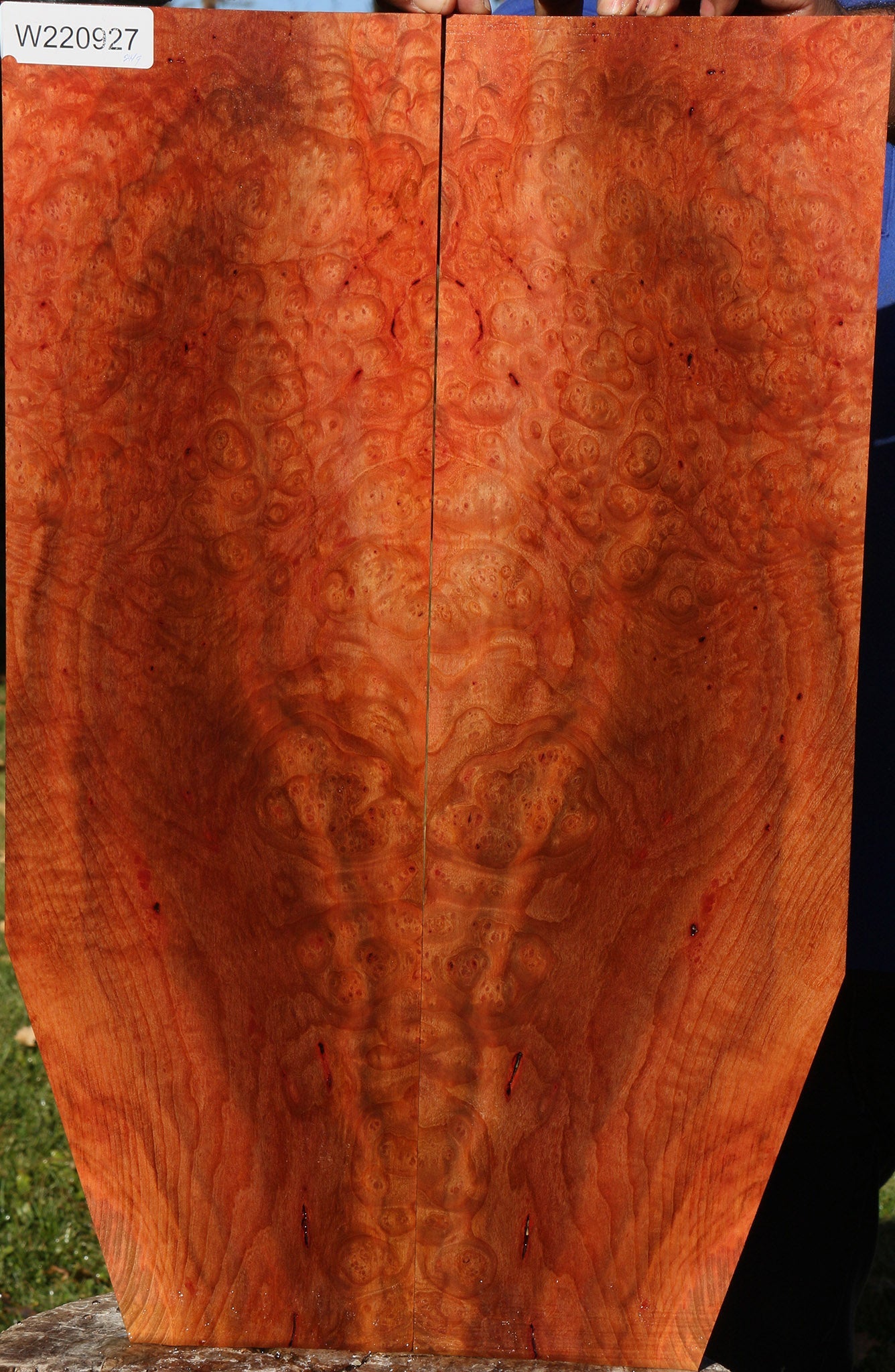 This Madrone burl lumber has pinkish brown color and lots of interesting grain! Dark red streaks might be present in some pieces. Madrone is a Pacific Northwest hardwood that is very easy to work with and finish. This burl was pressure cooked and vacuum kiln dried. The internal stress has been removed through the pressure cooking process. An occasional surface or edge check may be present. Checks or inclusions are normal in the burl eyes. If black color is present on the edges of the board, it usually does not penetrate further than 1/4″. This is a gorgeous species that is ideal for many woodworking projects! This piece has inclusions and planer skip. Please see pictures for details.