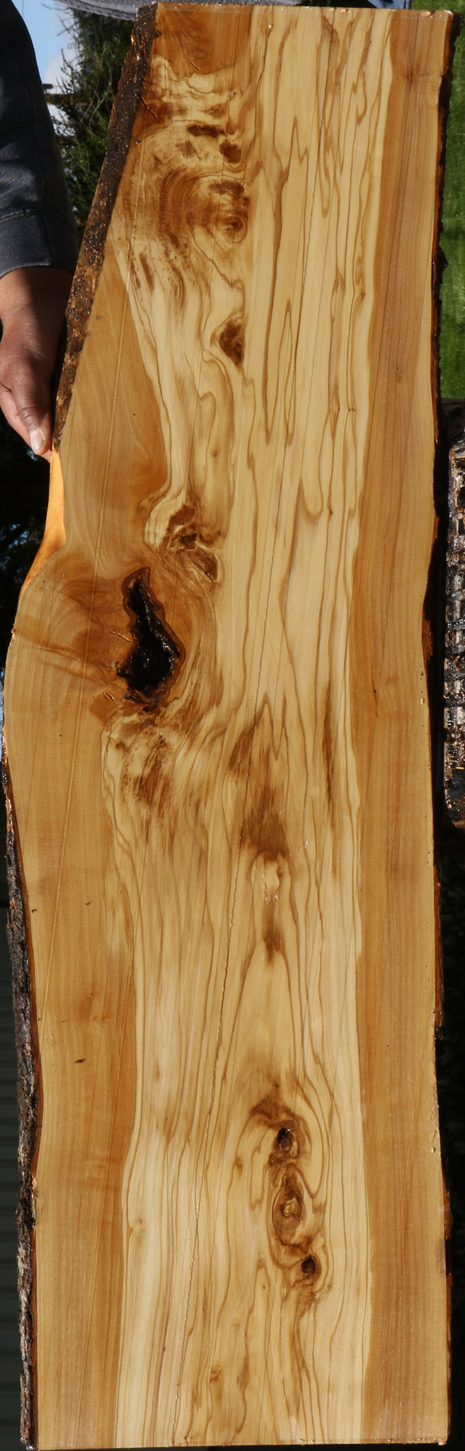 This stunning batch of Italian Olive lumber showcases a rich variety of figure, vibrant color, and elegant grain patterns. Kiln-dried and surfaced on both sides, these boards are ready to use right away. Some pieces may feature natural live edges, small checks, or knots, adding to their unique character. Boards over 36″ may have a slight bow or twist (1/16″ to 1/8″). The ends are wax-sealed for added stability. Italian Olive is an excellent choice for charcuterie boards, cheese trays, cutting boards, and other handcrafted projects! This piece has inclusions, splits, and checks. Please see pictures for details.