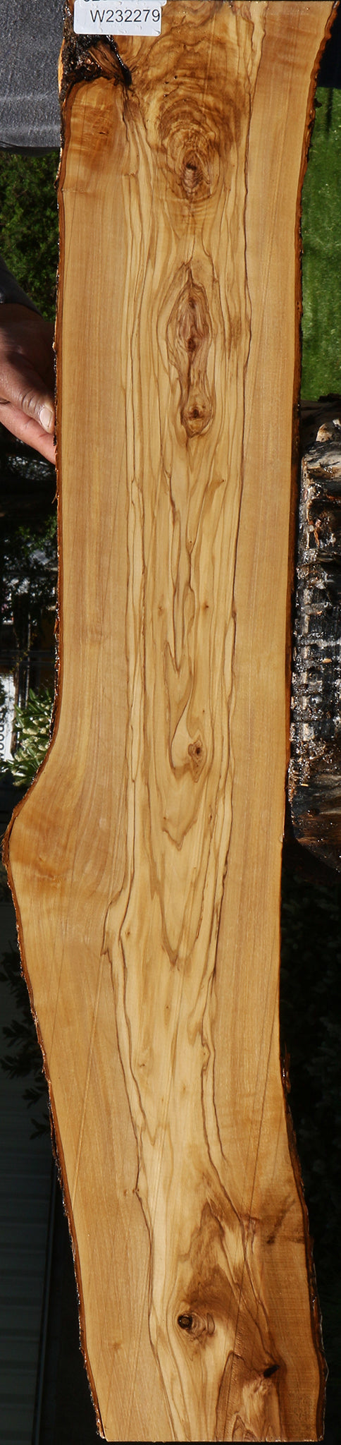 This stunning batch of Italian Olive lumber showcases a rich variety of figure, vibrant color, and elegant grain patterns. Kiln-dried and surfaced on both sides, these boards are ready to use right away. Some pieces may feature natural live edges, small checks, or knots, adding to their unique character. Boards over 36″ may have a slight bow or twist (1/16″ to 1/8″). The ends are wax-sealed for added stability. Italian Olive is an excellent choice for charcuterie boards, cheese trays, cutting boards, and other handcrafted projects! This piece has inclusions. Please see pictures for details.