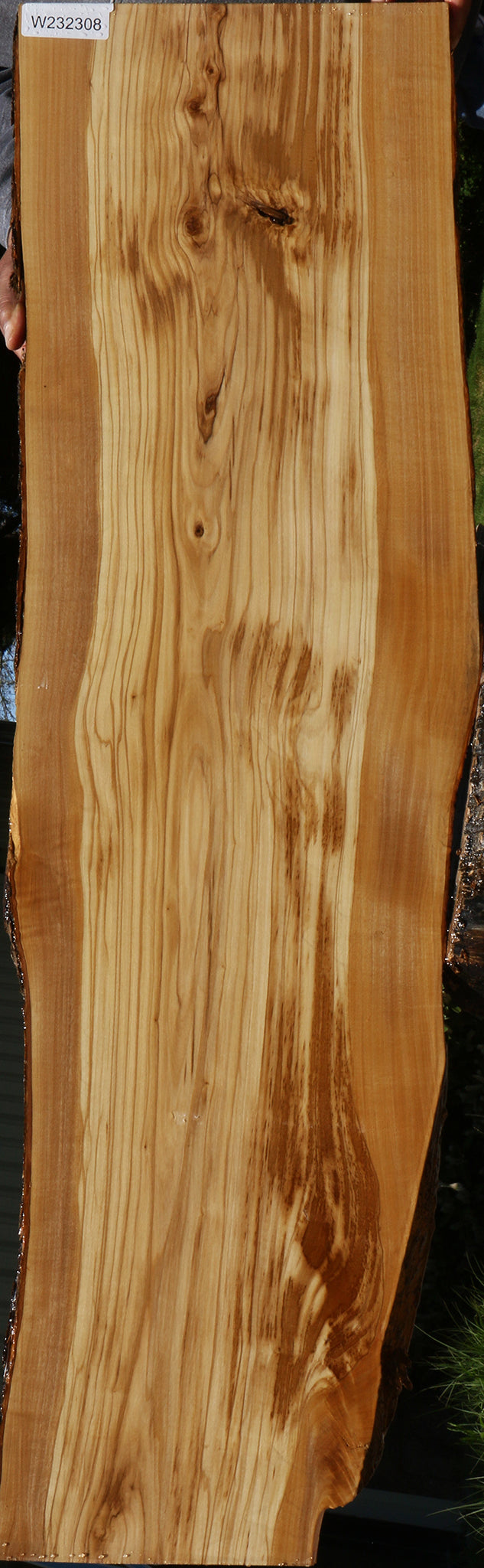 This stunning batch of Italian Olive lumber showcases a rich variety of figure, vibrant color, and elegant grain patterns. Kiln-dried and surfaced on both sides, these boards are ready to use right away. Some pieces may feature natural live edges, small checks, or knots, adding to their unique character. Boards over 36″ may have a slight bow or twist (1/16″ to 1/8″). The ends are wax-sealed for added stability. Italian Olive is an excellent choice for charcuterie boards, cheese trays, cutting boards, and other handcrafted projects! This piece has checks, splits, and inclusions. Please see pictures for details.