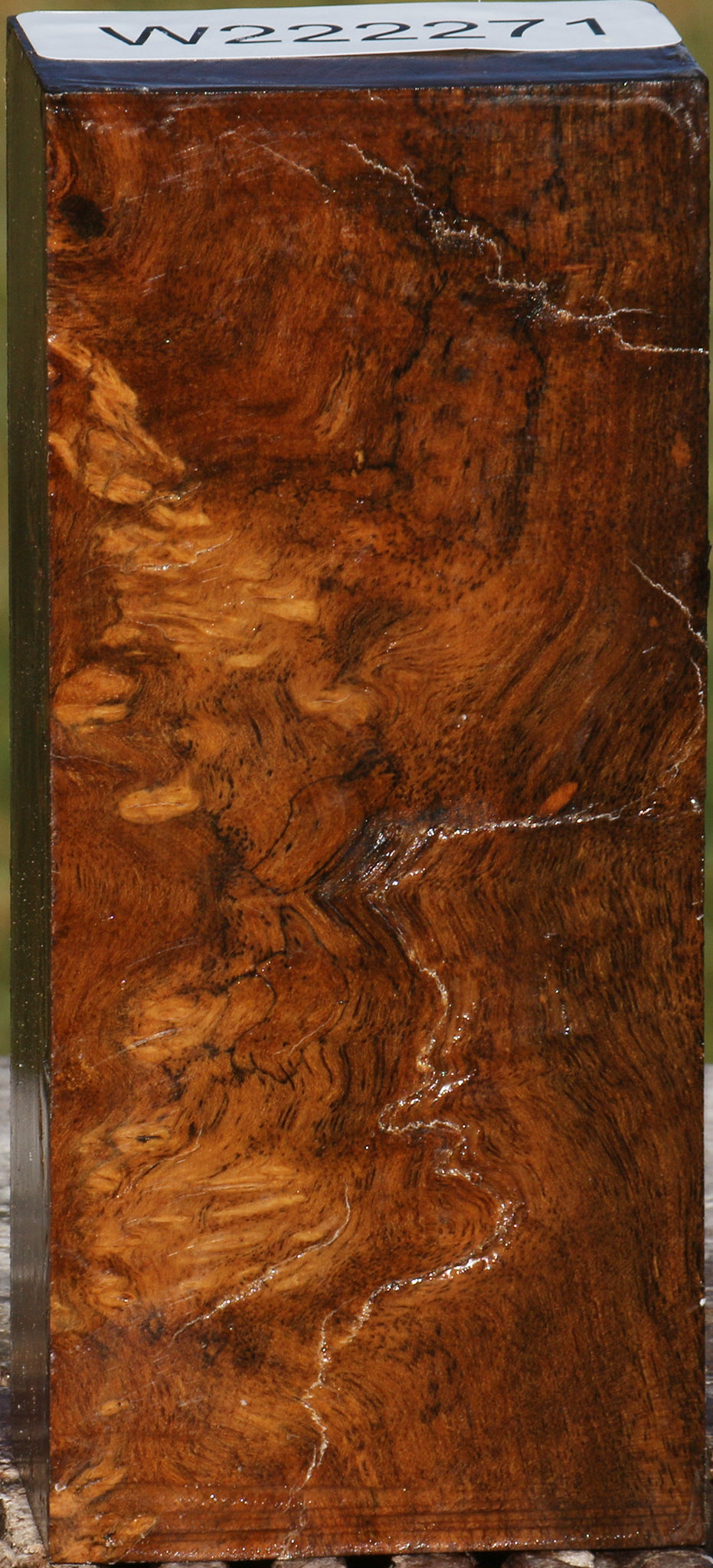 This beautiful Sindora burl wood is very rare and contains incredible burl eyes, color, and figure. This is only the second time in 25 years that we have had this species available! Some of the blanks in this batch have an exceptionally high amount of burl eyes per square inch, making it a wonderful choice for fine articles such as knife handles. Blanks are wax sealed and have air dried for 4 years, but contain a varying amount of residual moisture. This is all the stock that we have; when it is sold out it is gone, so shop quickly for the best selection! This piece has checks and inclusions. Please see pictures for details.