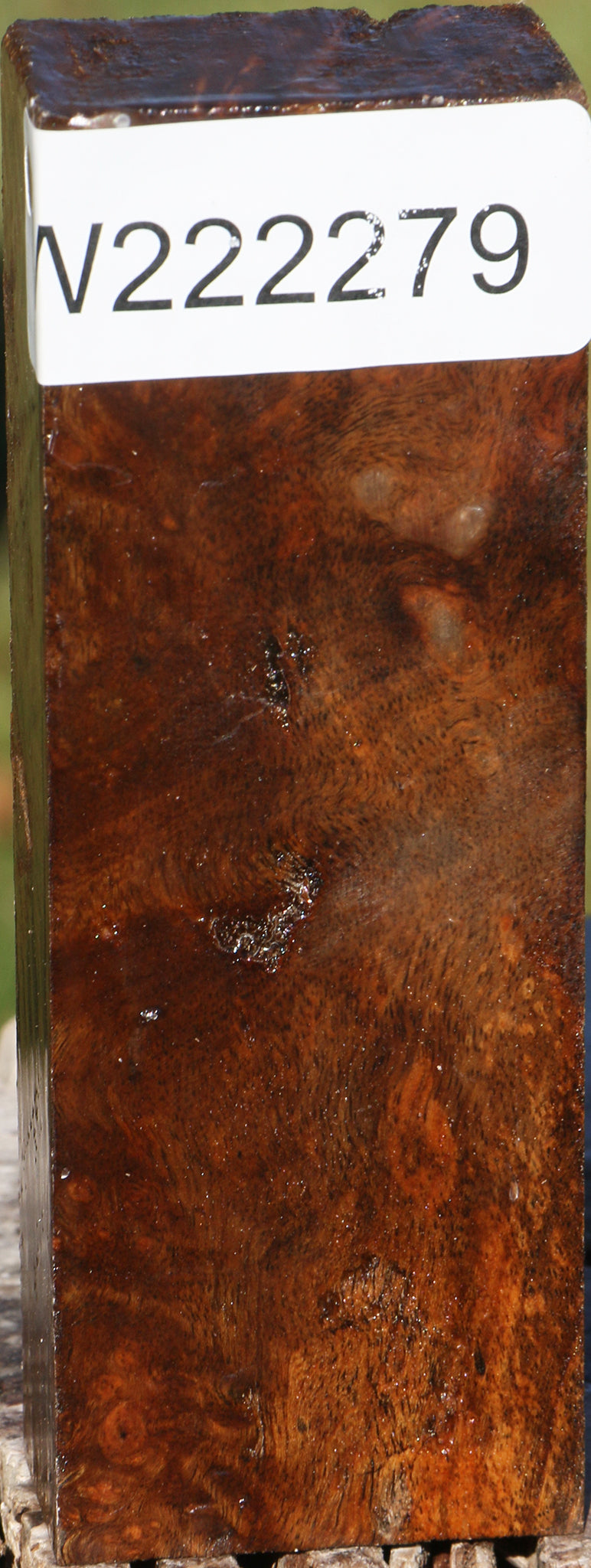 This beautiful Sindora burl wood is very rare and contains incredible burl eyes, color, and figure. This is only the second time in 25 years that we have had this species available! Some of the blanks in this batch have an exceptionally high amount of burl eyes per square inch, making it a wonderful choice for fine articles such as knife handles. Blanks are wax sealed and have air dried for 4 years, but contain a varying amount of residual moisture. This is all the stock that we have; when it is sold out it is gone, so shop quickly for the best selection! This piece has inclusions. Please see pictures for details.
