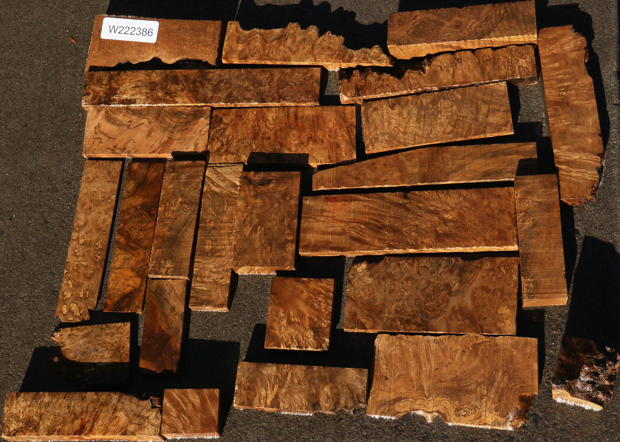 This beautiful Sindora burl wood is very rare and contains incredible burl eyes, color, and figure. This is only the second time in 25 years that we have had this species available! Some of the blanks in this batch have an exceptionally high amount of burl eyes per square inch, making it a wonderful choice for fine articles such as knife handles. Blanks are wax sealed and have air dried for 4 years, but contain a varying amount of residual moisture. This is all the stock that we have; when it is sold out it is gone, so shop quickly for the best selection! Items in this box may contain live edges, checks, inclusions, and splits. Please see pictures for details.
