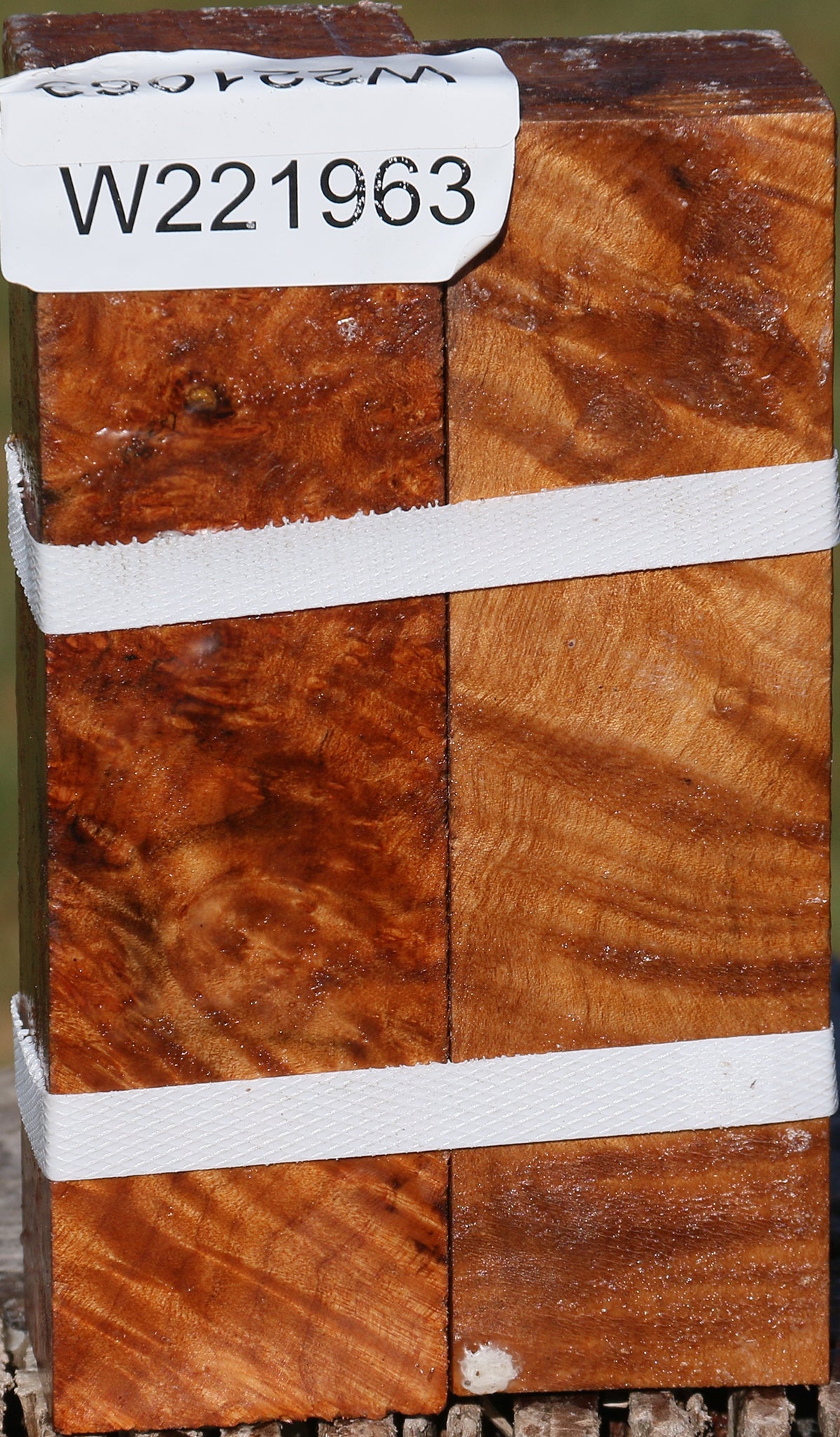 This beautiful Big Leaf Maple burl has been surfaced on two sides and is fully wax sealed. It was freshly cut in November of 2024 and contains moisture. It has a varying degree of figure, burl, and beautiful color. Inclusions and checks may exist in burl sections. This exceptional Maple is ideal for your special woodworking projects! This is a 2-piece set. The measurements above are for the shipping size. Each piece is similar in size, with the smallest piece measuring 6-3/4″ x 1-15/16″ x 1-15/16″. One or both pieces may have inclusions. Please see pictures for details.