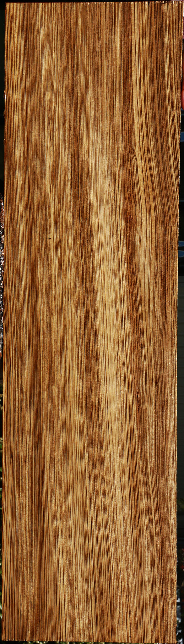 One of the most appealing features of Zebrawood is the exotic appearance of the colorful grain that is definitely present in this Zebra lumber! Black & golden lines make this an excellent choice for many woodworking projects. For ease in finishing, use a sanding sealer to seal the open pores. Most boards are quarter sawn or rift sawn and have variegations! Gum pockets or a minor check are naturally occuring and may be present in some boards. Boards longer than 36″ may have 1/8″ bow or twist but they are generally flat. Zebra is a unique African hardwood that’s great for accents. This lumber is kiln dried and ready to use. This piece has gum pockets and planer skip. Please see pictures for details.